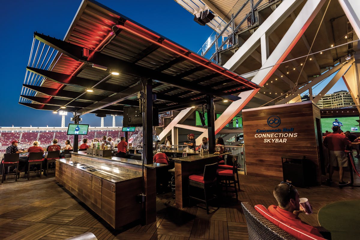 With the purchase of a Fioptics District Ticket, fans gain access to traditional ballpark seats and standing drink rails as well as the Fioptics District Rooftop. The rooftop patio features a bar, buffet and three tiers of ballpark seating overlooking left field and the Ohio River as well as lounge furniture and a 15-foot video board. Below the rooftop is the Fioptics GigaBar, the first full service walk-in bar on the View Level, which will have technology powered by Cincinnati Bell Fioptics including three virtual-reality booths and interactive displays. The spacious walk-in bar (open to all fans) features domestic, imported and craft beers plus wine and mixed drinks.